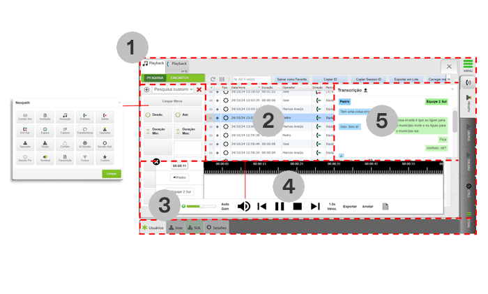 Monitoring Panel for continuous supervision of multiple calls with individual voice-activity indicators, enabling broadcast or multicast communication.